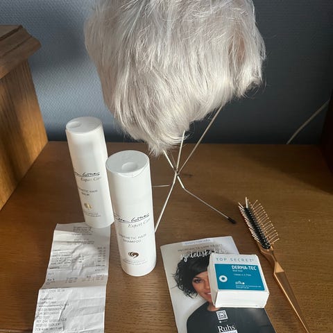 Parykk, kjøpt oktober 2025, svært lite brukt. Ny pris ca kr 10 000. Selges kr 3 000. Ellen Wille dameparykk i kort modell med grå farge. Parykken er laget i syntetiske fibre og har en pustende innerkappe i tekstilmateriale. Størrelse er merket MD. Egnet for dame som ønsker en kort frisyre i gråtoner, for daglig bruk eller ved behov for midlertidig hårerstatning.