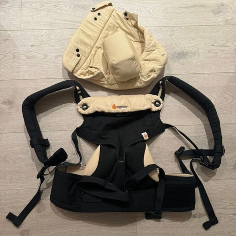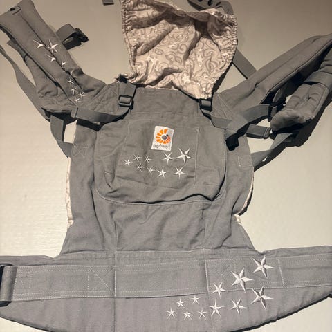 Pent brukt ergobaby bæresele med nyfødtinnlegg. Er også solskjerming i selen.