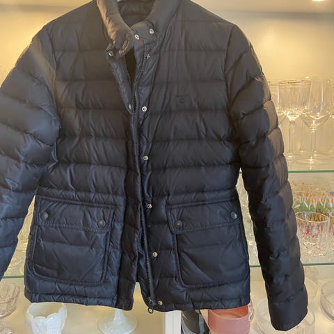 Bergans lett mellomjakke og flanellskjorte for dame i størrelse XS. Jakken er mørkblå, og skjorten er blå/brun og har flanell som materiale.