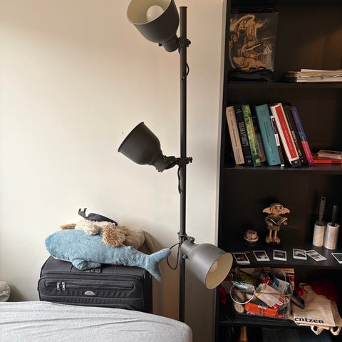 Selger en grå stålampe fra IKEA.