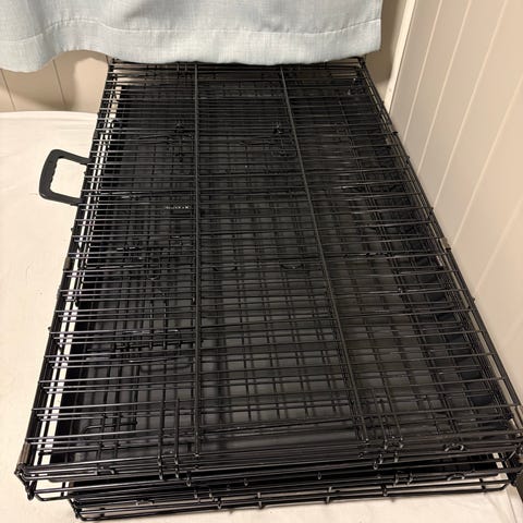 Sammenleggbart hundebur i metall i svart farge.