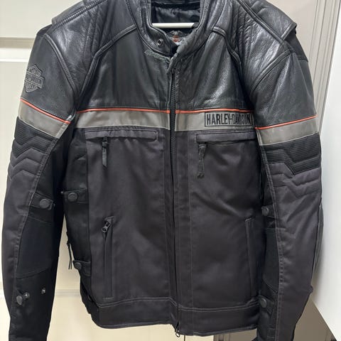 Harley-Davidson MotorClothes motorsykkeljakke for herre i størrelse XL. Jakken er laget i svart skinn med tekstilfôr på innsiden. Modellen har høy krage med trykknapp, glidelås i front og flere ytterlommer med glidelås. Det er paneler og sømmer tilpasset kjøreposisjon, samt refleksdetalj på ermet for bedre synlighet. Egnet som kjørejakke til motorsykkel med plass til beskyttelse der dette er tilrettelagt fra produsent.