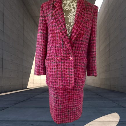 Pen brun semsket skinn drakt, jakke og skjørt fra Meindl, størrelse 42