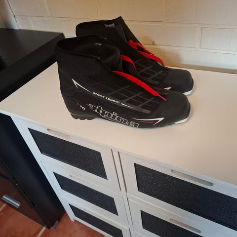 De røde og blå fargede skoene er str 35, de koster 200kr