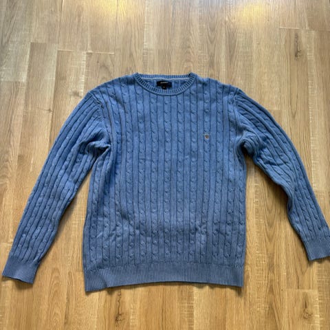 Redford genser for herre i størrelse M. Genseren er blå og laget av 100 % bomull. Den har rund hals og ribbestrikkede kanter i hals, ermer og nederkant. Fronten har et diskret brodert merke. Passer som hverdagsgenser eller til mer avslappede anledninger. Vask- og vedlikeholdsinformasjon står på innsydd merkelapp.