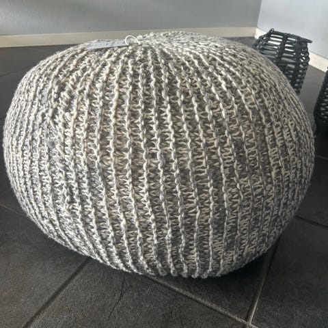 Dekorativ, rund puff laget av tykt garn er primært et produkt med universell bruk. Det vil fungere som et ekstra sted å sitte i stuen, en komfortabel fotstøtte eller et bord der du kan sette magasiner. Bomullsgarn som det ble laget av, kjennetegnes ved holdbarhet og er lett å ta vare på. Den presenterte puffen er et multifunksjonelt tillegg til stuen eller soverommet i enhver interiørstil.