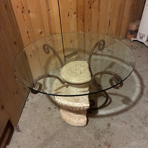 Pent brukt glassbord omkrets 75 cm.