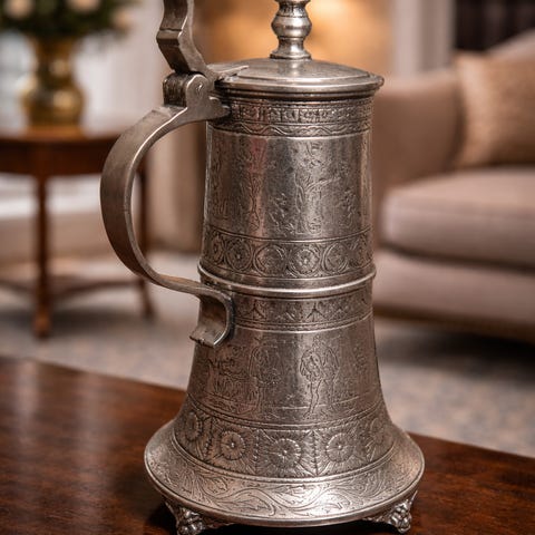 Selger et flott håndlaget norsk tinnsett fra merket TROLI-TINN.