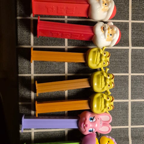 Guttungen rydder og selger unna. Samlingen består av flere ulike figurer på dispenserne, med forskjellige farger på både figurer og stammer. Dispenserne er laget for bruk med Pez-tabletter og kan også brukes som samleobjekter eller leker. Egner seg for barn og samlere som ønsker ulike motiver i samme serie.