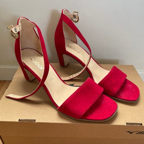 Brukt muligens en gang. Str 39. Røde pensko fra Bianco.