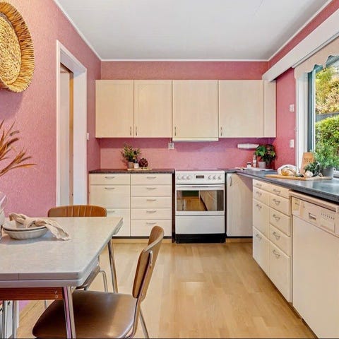 Kjøkkeninnredning hjørnekjøkken grå med trebenkeplate
