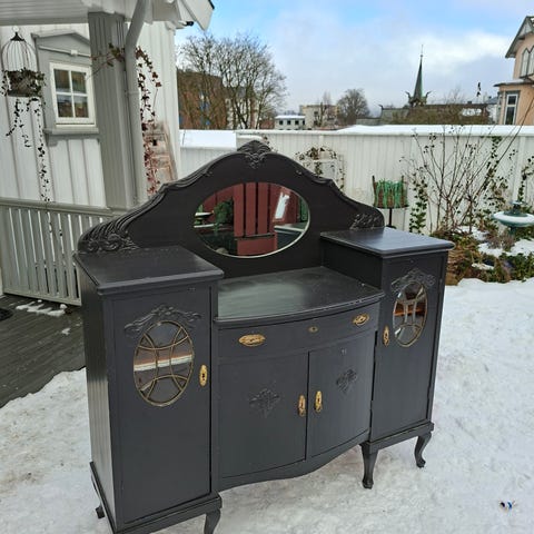 Skjenken er i heltre og laget for hånd. Den er fra Setesdalen. Overdelen kan tas av.