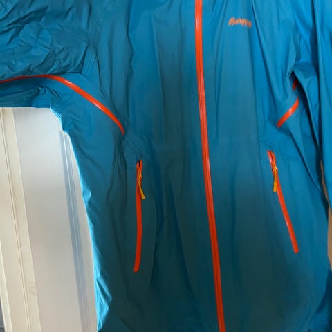 Lett og fin allværsjakke. Pent brukt, kun en liten flekk nede ved glidelåsen foran (se bilde). Jakken er brun.
