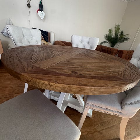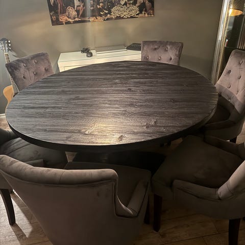 Pent brukt rundbord med 6 stoler.Ny pris på dette var:13999,-.Selges nå for 4500,-