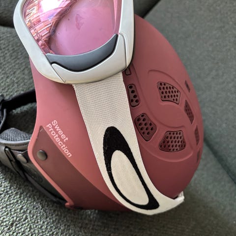 Oakley skibriller rødt glass rosa stropp