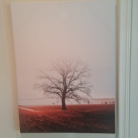 Selger et dekorativt bilde på lerret, antar det er 70x70 cm
