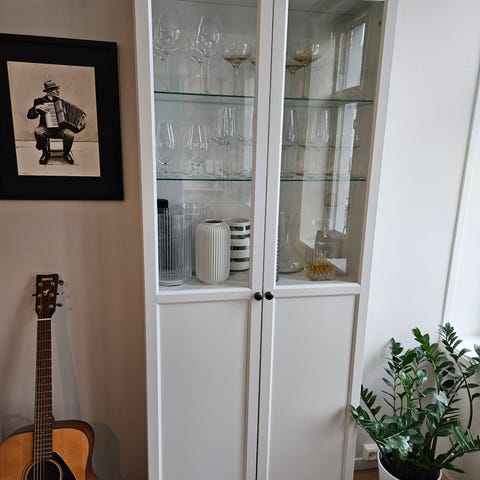 Selger et pent godt brukt vitrineskap fra jysk. Må strammes i skruer da det er litt løst. Stått lenge.