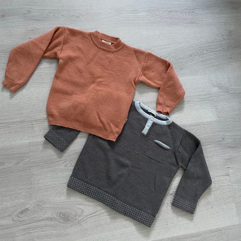 Wheat stripet ullgenser for jente i størrelse 110, Gullkorn burgunder ullgenser størrelse 110/116.