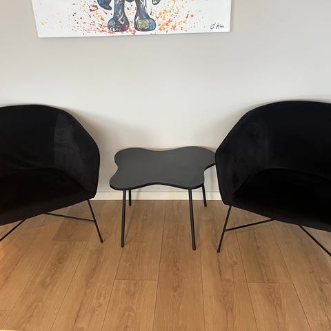 Selger 4 stoler fra Ellos. Pent brukt da dem for det meste har stått til pynt. Må hentes. Bord på bilde følger ikke med.