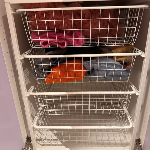 Er to OMAR hyller satt oppå hverandre. Kan også brukes som to separate hyller. Følger med to ekstra plater.