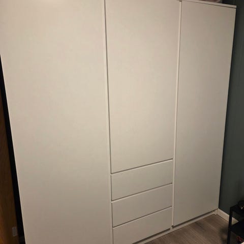 Godt brukt garderobeskap selges. Skapet består av to identiske deler som står sammen. Det er ferdig demontert. Det har noen bruksmerker (se bilder), men fungere veldig bra . Må hentes.