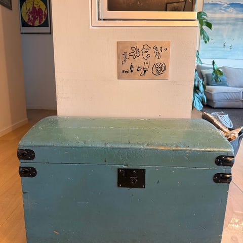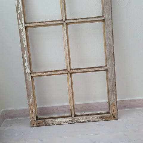 Antikk vindu pusset varsomt ned. To sprekker i to hjørner. Fullt funksjonelt med hemper og hengsler som kan åpnes. Alt originalt utenom noen få skruer. Fin pynt til bilder inni eller annet stæsj som kan oppbevares.