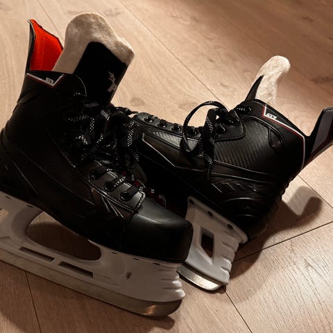Overdelen er en kombinasjon av syntetisk materiale og tekstil med polstret innside for økt komfort. Lukkesystem med snøring, borrelåsrem og justerbar spennestropp gir stabilitet rundt ankel og fot. Skøytene har stålskinne tilpasset ishockeybruk.