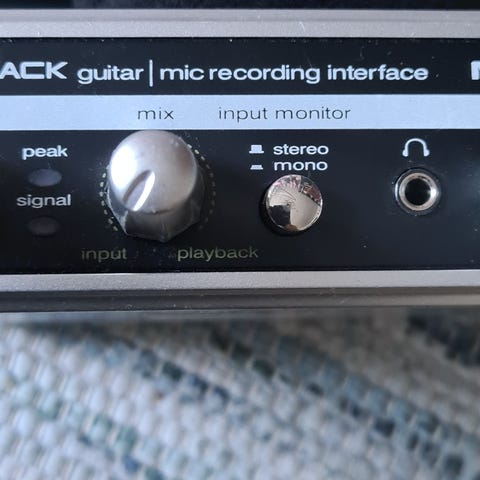 På baksiden finnes tilkoblinger for blant annet USB og ekstra lydtilkoblinger. Passer til hjemmestudio og enkel opptaksløsning der man ønsker å koble gitar eller annet instrument direkte til PC/ Mac.
