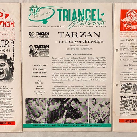 TARZAN Filmprogram og vaskesedler.
