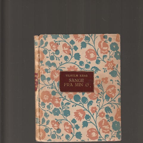 Vilhelm Krag «Sange – et udvalg», bok på 119 sider. Lyrikksamling med utvalgte dikt/sanger av Vilhelm Krag. Utgitt i Kristiania i 1917 på forlaget H. Aschehoug & Co. Innbundet utgave med dekorert omslag. Tekst på dansk/norsk riksmål fra tiden. Egner seg for lesere som er interessert i nordisk lyrikk, klassisk norsk litteratur og eldre bokutgaver.