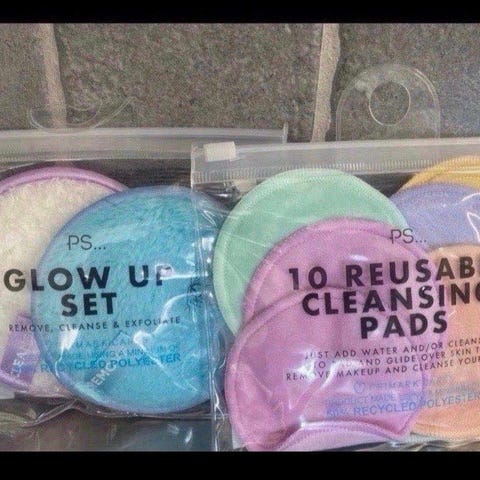 Ansiktsrens sett som inkluderer flere produkter for rensing av ansiktet. Settet består av myke rensekluter i ulike farger, gjenbrukbare runde rensepads i flere pastellfarger, en manuell ansiktsbørste med håndtak og en pumpeflaske for flytende produkt. Egnet til daglig ansiktsrens og fjerning av sminke. Passer for generell bruk til hudpleierutiner.