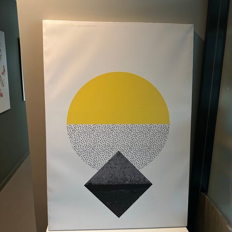 Det er rene hvite farger på bakgrunnen og på rammen, bildet er gult pga dårlig lysforhold. 52x42cm. Gis bort, må hentes.