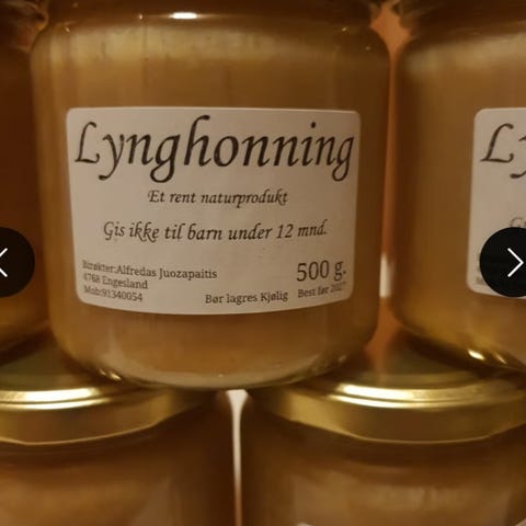 Selger sesongens rørte honning. Honning fra ville sommerblomster, mye bringebær, kløver og gjeitrams. Mild og god på smak. Rørt for å holde en fin og myk konsistens ved lengre lagring.