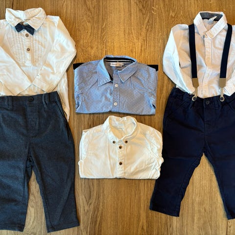 Skjorte og bukse med seler til gutt. Fra Newbie, str. 86. Pent brukt av ett barn noen få ganger, helt uten anmerkninger/