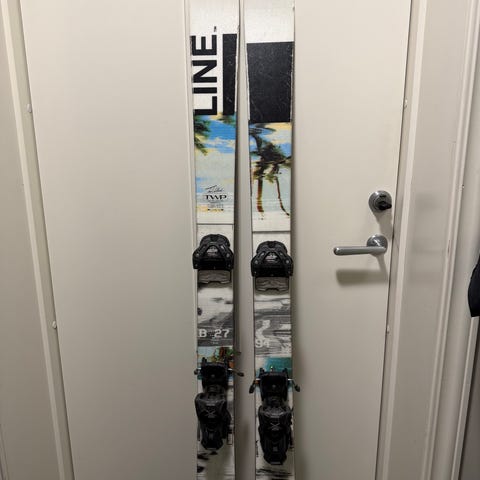 Skiene er en twintip-modell med lengde 119 cm. De har integrerte bindinger montert på skiene. Toppbladet har grafikk i hvitt, svart og oransje, mens sålen er svart med Line-logo.
