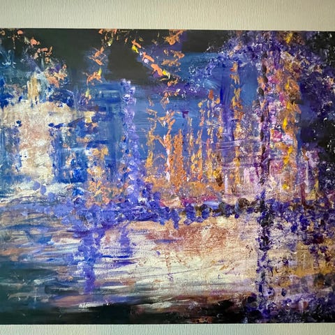 Lerret med abstrakt blått kunstmotiv. Bildet viser et mønster i ulike blåtoner som kan minne om vann eller is. Passer som veggdekor i stue, spisestue, kontor eller andre oppholdsrom. Rammen på maleriet får bilde til å poppe litt mer ut fra veggen, og maleriet blir virkelig et blikkfang✨
