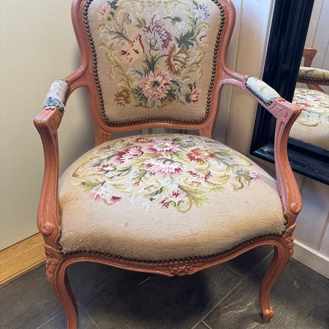 Barokk stol i rotting gis bort med pute