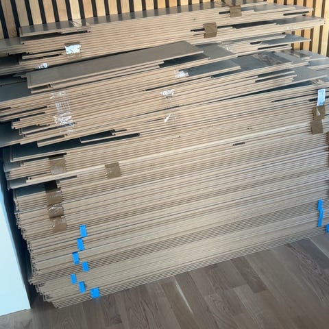 Selger billig spilevegg. Det er 3 deler på rundt 50cm bredde samt 2 deler på under 20cm bredde.