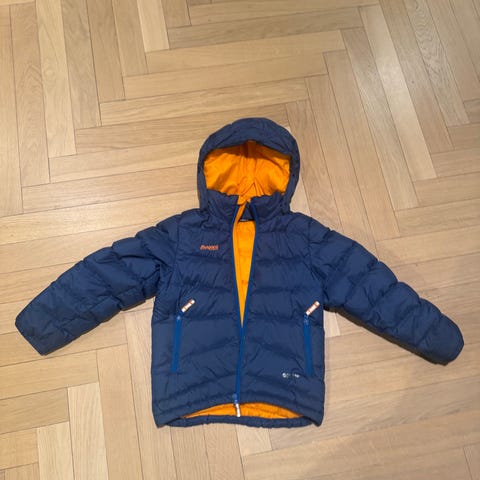 Bergans barnejakke i størrelse 116. Jakken har vattert/fôret innside og elastiske avslutninger ved ermer og nederkant.