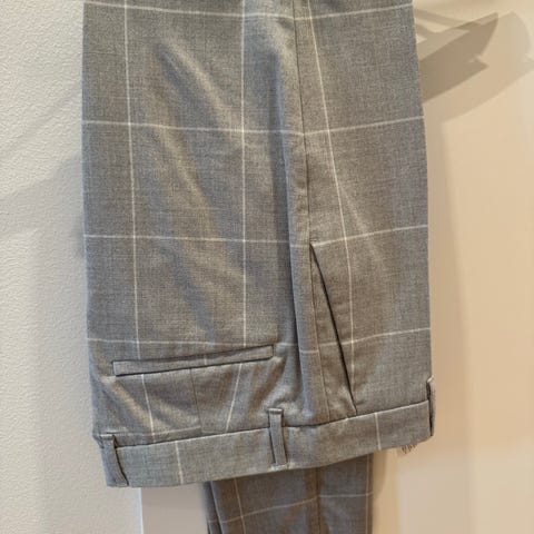 Cavour mod 3 i str 48, i nydelig blåfarge. Lagt opp med oppbrett til meg på 1.80, samt noe inn i livet - begge kan tilpasses av skredder.