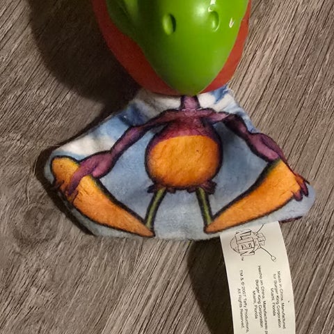 Denne leken er en Squirtin' Screature, en figur som ble delt ut som en del av Burger Kings "Kids Meal"-kampanje i 2010. Den er basert på den interaktive "Screature"-leken fra Mattel.
