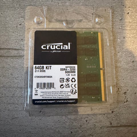 Samsung RAM-brikke for laptop, 32GB DDR4, dual rank PC4-2666.