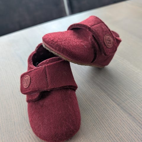 Nydelige wheat tøfler i strl 21, brukt i barnehagen.