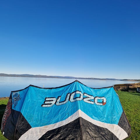 Har ikke de beste bildene av den, men den er veldig stor. Baren er allerede koblet på kiten, så man trenger ikke styre med det, og pumpe følger selvsagt med. Prisene står under, men kan forhandles, om man vil leie lengre eller kortere så går det til avtalt pris:)
