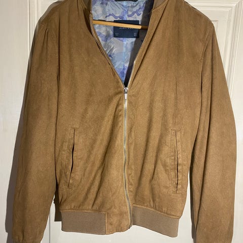 Zara jakke for herre i semsket skinn i brun farge, størrelse S. Send mld for mer info. Koster 1000kr heilt ny.