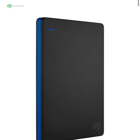 Seagate Game Drive ekstern harddisk med kapasitet på 2 TB, tilpasset bruk med PlayStation 5. Enheten er i hvit farge og kobles til konsollen via USB (kabel ikke synlig på bildet). Egner seg til lagring av spill, lagringsfiler og annet digitalt innhold tilknyttet PS5-konsollen.