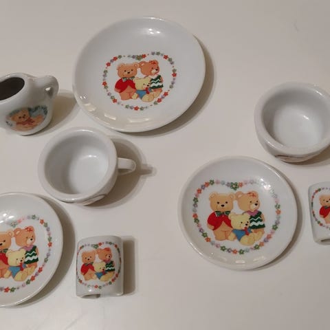 Barnekopper med skål porselen hvit med dyremotiv.