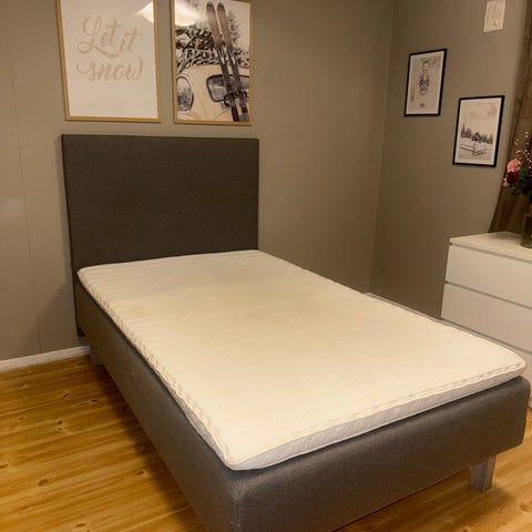 Hel og fin seng uten overmadrass.
