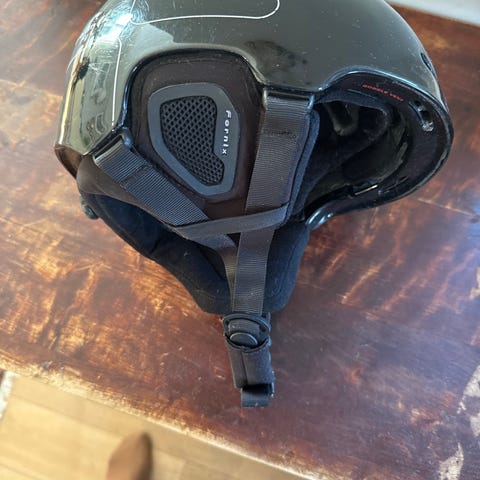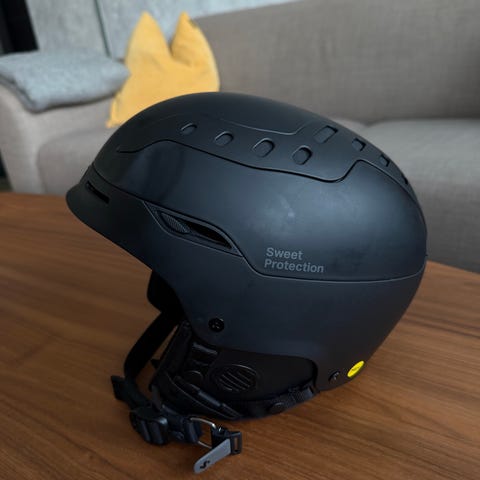 Lite brukt hjelm selges grunnet feil strl. Noe riper i lakk på toppen (se bilde). Ingen bulker eller mangler.
