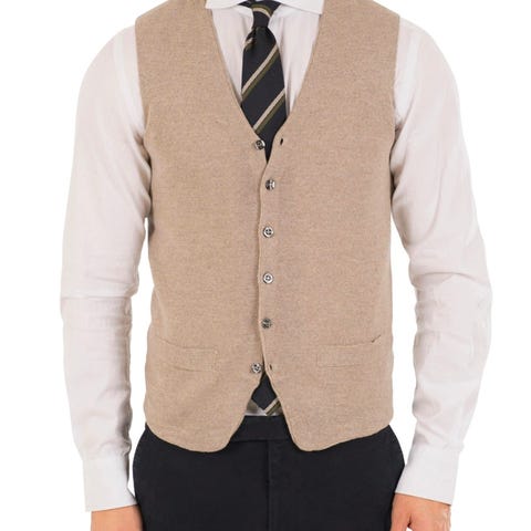 Oscar Jacobson vest til herre i størrelse S. Vesten er grå og laget i ullblanding, med vattert og quiltet design. Den har høy krage og glidelås i front. På innsiden er det glatte fôrpaneler og en innerlomme med glidelås. Passer som et ekstra lag over skjorte eller genser i kjøligere vær.